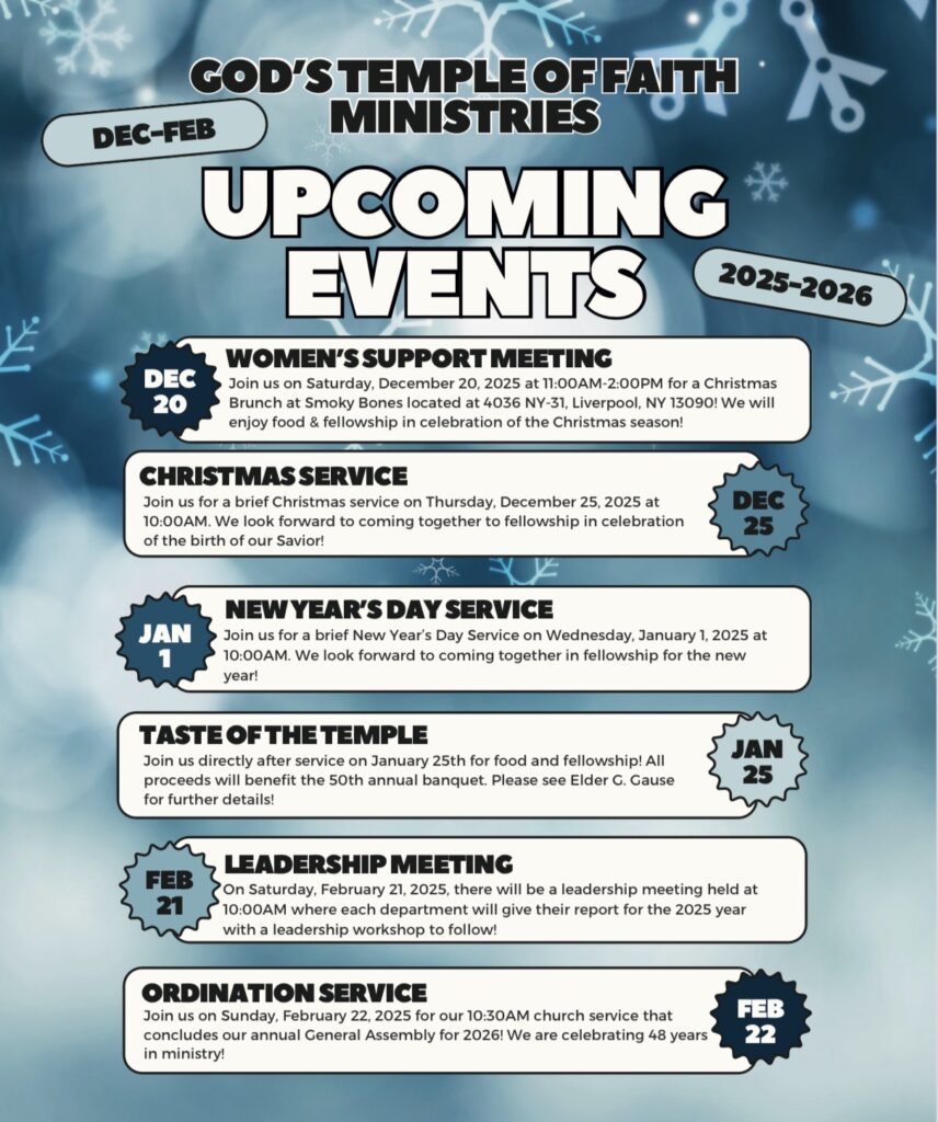 God’s Temple of Faith Ministries is a Bible teaching ministry within the body of Christ.